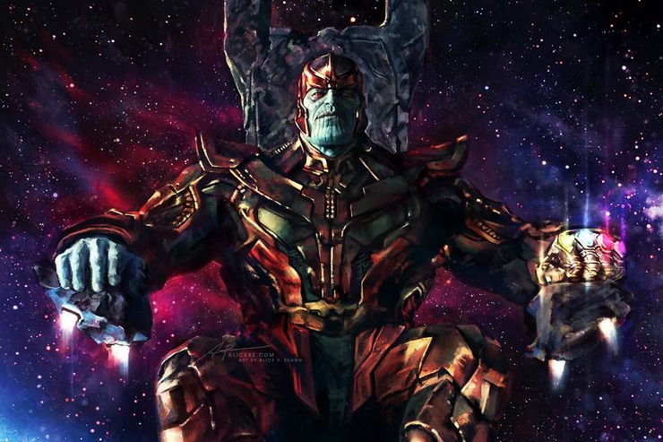 La prévision de Malthus ne s’est jamais réalisée. Le progrès technique a permis et permet toujours aujourd’hui de continuer à augmenter la production et les rendements agricoles. L’innovation s’est montrée plus forte que les statistiques. Comme nous l’avons vu avec Ultron, il s’agit surtout une fois de plus de mettre en scène l’hubris de l’homme, le péché qui consiste à se croire supérieur à la nature, à ne pas prendre en compte les avertissements, un comportement qui va inévitablement engendrer une punition cosmique. Un nouveau déluge. Thanos est le super-vilain qui va prendre sur lui d’accomplir, tel un eco-warrior galactique, ce destin funeste, ce ré-ajointement de toutes les populations de l’univers à la matière disponible. Comme toujours, l’enfer est pavé de bonnes intentions. Il faudrait tuer, accomplir un génocide universel, pour défendre la vie elle-même.