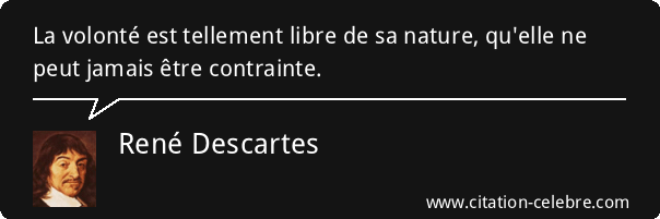 La conception de la volonté de Descartes, sans être fausse en elle-même, doit être correctement comprise. Elle est un absolu. La volonté peut effectivement vouloir tout ce qu’elle veut. C’est une puissance pour ainsi dire métaphysique. Mais ce n’est pas pour autant qu’elle peut réaliser tout ce qu’elle veut. Descartes, dans sa morale provisoire, nous dit aussi qu’ « il faut changer ses désirs plutôt que l’ordre du monde ». Et ce qui nous intéresse, c’est la réalisation de nos désirs, mais l’infinité du désir lui-même.