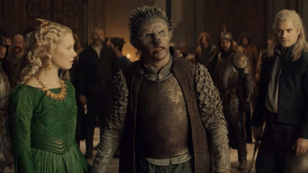 Calanthe ordonne à Hérisson de retirer son heaume, sous lequel il cachait jusque-là son monstrueux visage de hérisson. Même face à ce visage, Pavetta acquiesce et dit oui à Hérisson. Les autres prétendants se révoltent et une bagarre éclate. Geralt sauve Hérisson. Eist Tuirseach protège Calanthe. Pavetta se met à crier, hurler même, si fort qu’elle se retrouve élevée dans les airs, entourée d’une aura de lumière verte. Sac à souris remarque que Pavetta ne doit plus être vierge, car ce pouvoir ne peut être libéré par une vierge. Son pouvoir lui vient sans doute de sa grand-mère, Adalia. Alors que la magie continue d’inonder la salle, Hérisson se transforme et redevient le beau chevalier qu’il était auparavant. Il n’est pas un monstre. Il reprend son nom d’homme, Dunny. Il était la victime d’un maléfice qui a été levé lorsque son union avec Pavetta a été approuvée par Calanthe. Hérisson / Dunny savait. « J’ai fini par apprendre, je ne sais plus comment, que je pouvais être délivré de cette malédiction par un enfant-surprise. Quelque temps après, j’ai rencontré Roegner ». La malédiction, le sauvetage, l’enfant surprise, l’amour, la résolution de la sorcellerie, nous sommes au cœur de l’œuvre.