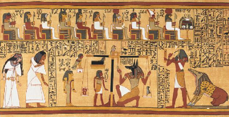 La première source possible est l’Egypte antique, dont la tradition nous est parvenue par Le Livre des morts. Il donne une première explication complète du chemin de l’âme après la mort, sa transmigration dans une autre vie. En grec on parle de métempsychose, qui signifie l’âme après l’être, ou l’être de l’âme après, sous-entendu la vie. Pour les égyptiens, l’âme est immortelle et connaît une autre vie après la mort. Il faut accompagner autant que possible l’âme dans son futur destin.
