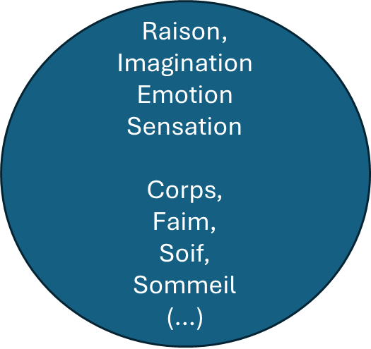 L’universalisme repose sur les critères logiques de la définition du concept et de l’universel. La pensée, l’émotion, le corps, sont tous bien universels, c’est-à-dire présents chez tous les hommes. La variation de chacun des critères n’entre pas en compte dans la définition, en tout cas, pas à ce stade du raisonnement.