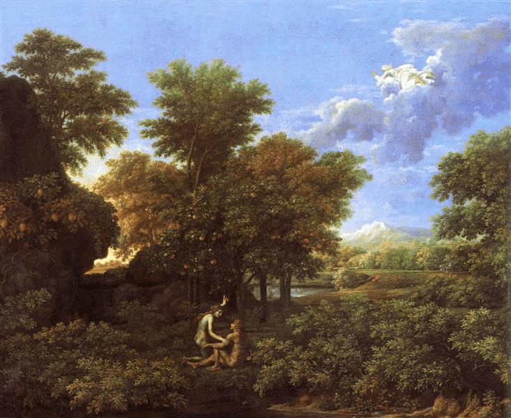 Aristophane commence son discours et se lance dans un récit mythique sur les origines de l’humanité. Autrefois, l’espèce humaine comprenait trois genres (genos, race, espèce, lignée… pas le genre au sens des études de genre du wokisme, où le terme sert à évacuer la question du sexe biologique pour la remplacer par le genre déterminé par l’imagination et le ressenti personnel -Gender trouble de Judith Butler – Ici le lien à la biologie est évident). Il y avait le masculin, le féminin et l’androgyne, qui était à la fois mâle et femelle. Ces androgynes étaient des boules d’une seule pièce, tout à fait comme si un corps d’homme et un corps de femme avaient été collés face à face. Avec ses 4 jambes et ses 4 bras, il avançait en faisant la roue. Le mâle était un fils du soleil, la femelle de la terre, et l’androgyne, de la lune, qui est un mélange de soleil et de terre. Les androgynes étaient forts et orgueilleux. Ils s’attaquèrent aux dieux. Zeus décida de les couper en deux, pour les rendre à la fois deux fois plus faibles, mais aussi deux fois plus nombreux pour qu’il y ait deux fois plus d’humains pour louer les dieux. Et s’ils restaient orgueilleux, Zeus menaça de les couper à nouveau en deux et de les forcer à se déplacer à cloche-pied (trait d’humour du poète comique, de tel êtres seraient ridicules, et cette image est drôlatique). Une fois coupé en deux, Apollon était chargé de retourner leur visage du côté de la coupure, pour les rendre modestes. Toutes les coutures nées de cette dissection furent toutes réunies en un point, le nombril.